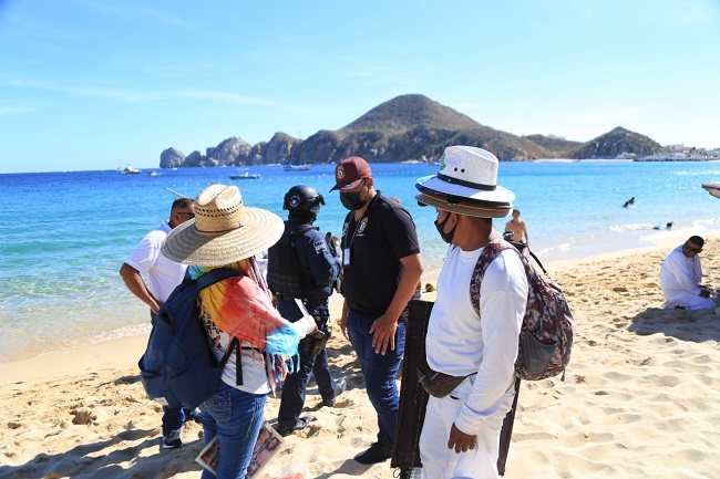 Con la finalidad de verificar que quienes se dedican al comercio del ambulantaje, lo realicen de manera ordenada y en apego a los lineamientos emitidos por el XIV Ayuntamiento de Los Cabos, personal de la Coordinación de Inspección Fiscal refuerza operativos en las diversas playas de este municipio, para identificar y retirar a quienes no cuenten con el permiso correspondiente.