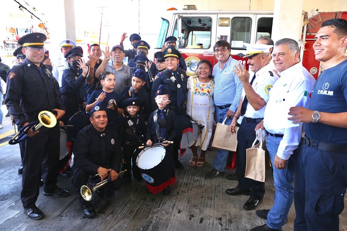 Los Cabos, B.C.S., 21 agosto 2022.- En marco a la celebración del día 22 de agosto, Día del Bombero, el presidente municipal de Los Cabos Oscar Leggs Castro, hizo entrega de reconocimientos al grupo infantil y juvenil del Departamento de Bomberos de Cabo San Lucas, en compañía del fundador del departamento, comandante Gildardo Payan y del capitán, Juan Carbajal, asimismo el agradecimiento a la iniciativa privada por la donación de los mejores 60 uniformes para que la corporación combata el fuego bien equipada.