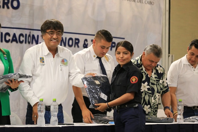 Por otra parte, el comandante del Departamento de Bomberos Omar Barrera Núñez, agradeció la presencia de las autoridades y familiares, al tiempo que enalteció a los bomberos que acudieron al evento: “nos engalana que todas las autoridades estén aquí, pero quiero recalcarles que este día es para las y los 80 bomberos que están presentes; hoy se marcó en la historia que el Departamento de Bomberos de San José del Cabo tiene un desarrollo potencial en el municipio, creciendo hasta la zona norte, al contar ya con 5 estaciones activas 24/7 gracias al apoyo del Ayuntamiento que preside Oscar Leggs Castro”, puntualizó.