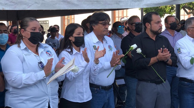 Con un homenaje de cuerpo presente, encabezado por el alcalde Oscar Leggs Castro, la secretaria general del Sindicato de Burócratas Sección Los Cabos, Maricela Montaño Peralta, el equipo de Cultura del Agua Los Cabos a cargo de la Lic. Wendy Castellanos Leggs y servidores públicos del Ayuntamiento de Los Cabos, se despidió con rosas blancas al compañero y amigo Jesús Rodríguez Daza.