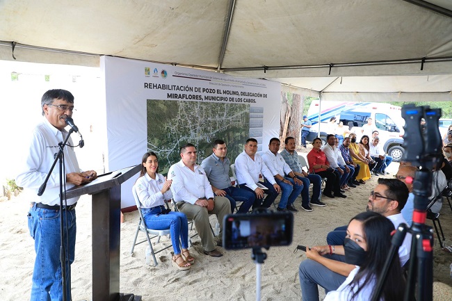 En su intervención el titular del Oomsapas Los Cabos, Ismael Rodríguez Piña, hizo énfasis que en la actual Administración «Ni un pozo más en el olvido», y apuntó que con el Pozo El Molino se suman 9 litros por segundo que abastecerán al 60% de la población de la delegación de Miraflores.