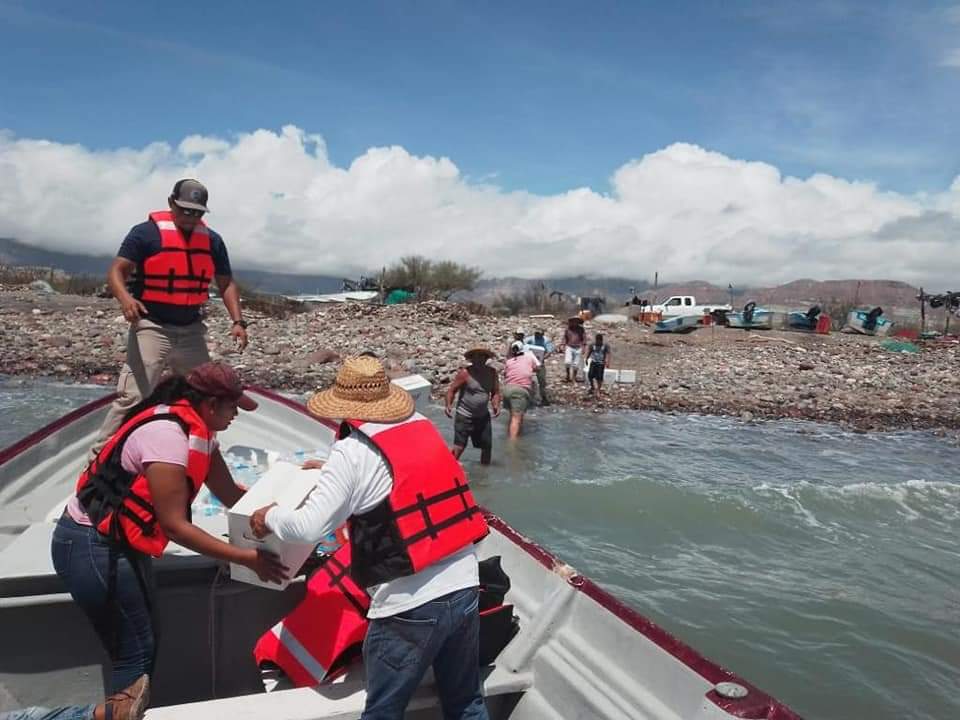 En el municipio de Comondú, el equipo a cargo de Fernando Romero Romero, colaboró con el Ayuntamiento de Comondú en el traslado de dos toneladas de alimentos y medicamentos para las comunidades de San Juanico y Las Barrancas. Los insumos fueron trasladados a bordo de la embarcación “Cobra II” propia del FONMAR y entregados a los subdelegados para su reparto.