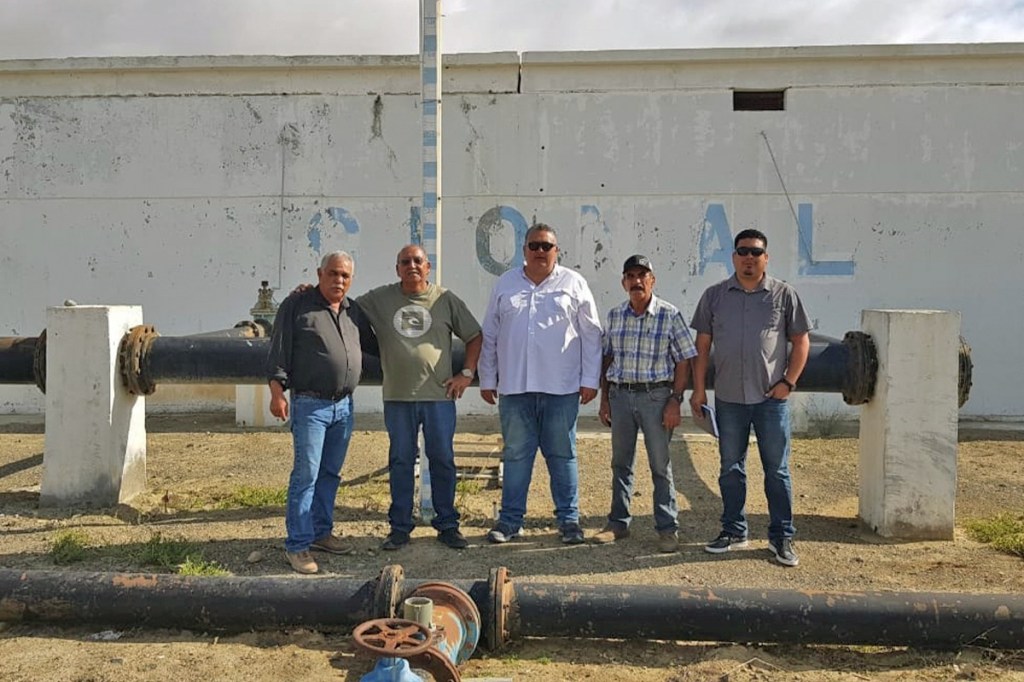 Continuando con el restablecimiento de los servicios en las comunidades del municipio de Mulegé, el Director del FONMAR, Martín Inzunza Tamayo y el Subsecretario de la SEPADA, Marcelo Armenta realizaron una verificación del estado del acueducto Vizcaíno-Pacífico Norte y el abasto disponible de líquido.