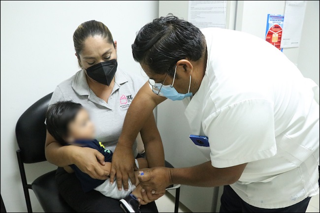 Como parte de los esfuerzos que se llevan a cabo en Baja California Sur para proteger el sano crecimiento de las nuevas generaciones, la Secretaría de Salud lleva a cabo la aplicación de la vacuna hexavalente a niñas y niños de dos, cuatro y seis meses en las unidades médicas de primer nivel de atención que tiene distribuidas en los cinco municipios.