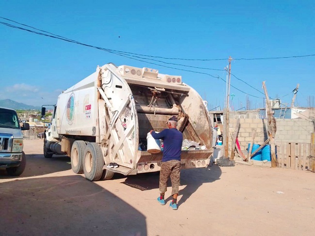 Diariamente personal de la Coordinación de Servicios Públicos, traslada hasta el relleno Sanitario de Migriño, alrededor de 220 toneladas de basura doméstica, mismas que se retiran a través del servicio de recolección que se otorga 3 días a la semana en 115 colonias de Cabo San Lucas.