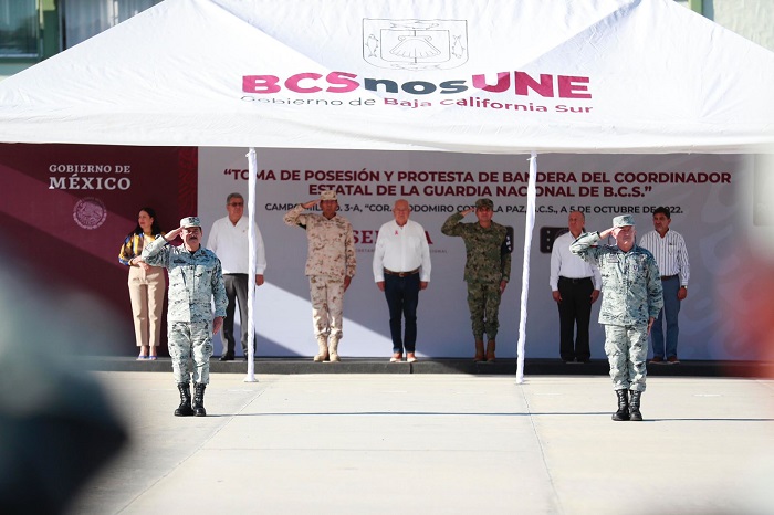 Al acudir a la ceremonia de relevo de mando en la Coordinación Estatal de la Guardia Nacional, el gobernador Víctor Castro Cosío, reiteró su disposición a seguir trabajando con el Ejército Mexicano, la Marina Armada de México y la Guardia Nacional por la paz y tranquilidad de las y los sudcalifornianos.