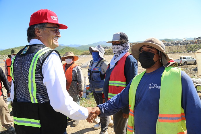 Los Cabos, B.C.S, 06 octubre 2022.- Una de las prioridades del alcalde Oscar Leggs Castro es presidir un Gobierno cercano a la gente y con profundo sentido humano, es por ello que para consolidar este compromiso visitó el relleno sanitario que se ubica en el Ejido La Candelaria de Cabo San Lucas, donde sostuvo un fructífero acercamiento con las personas dedicadas a la recolección de residuos y separación de materiales de reciclaje en dicho lugar.