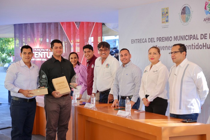 Los Cabos, B.C.S., 13 octubre 2022.- Con la meta de reconocer el talento y la capacidad de las y los jóvenes del municipio, el XIV Ayuntamiento que preside Oscar Leggs Castro a través del Instituto de la Juventud del Municipio de Los Cabos, hizo entrega del “Premio Municipal de la Juventud 2022”, a 10 jóvenes destacados del municipio, quienes se hicieron acreedores a un reconocimiento y $10 mil pesos.