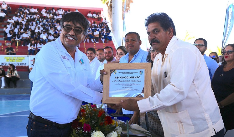 “Es un verdadero honor para mí como presidente municipal y como profesor participar en este evento, donde se reconoce y se celebra la trayectoria de un hombre dedicado a la enseñanza’’, así lo refirió el presidente municipal de Los Cabos Oscar Leggs Castro, durante el acto de reconocimiento al trabajo dentro de la aulas del profesor Miguel Antonio Olachea Ochoa; dicho evento fue realizado en las instalaciones del auditorio municipal de Cabo San Lucas, en presencia de personal docente, familias, amigos y estudiantes.