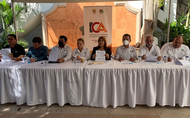 Los Cabos, B.C.S., 13 octubre 2022.- Con el objetivo de colaborar con instituciones educativas para fomentar los valores culturales en la juventud cabeña, la mañana de este jueves, el XIV Ayuntamiento a través del Instituto de la Cultura y las Artes del Municipio de Los Cabos (ICA) a cargo de Irene Román Salgado, llevó a cabo la firma oficial del convenio de colaboración con el CECYTE 07, ITES, CETMAR 39, UABCS y La Normal Superior, entre otras.