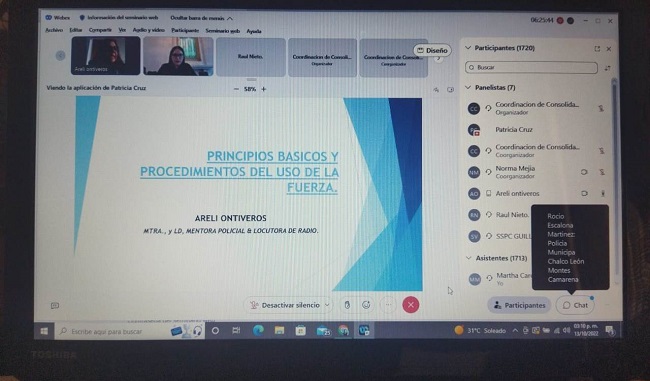 Del 12 al 14 de octubre, personal de esta institución participó en la capacitación, cuyo propósito es que actualicen sus conocimientos y adquieran nuevas prácticas que abonen al mejor desempeño de sus labores, y que las mismas vayan apegadas a las normas vigentes en la materia, con el fin de que la ciudadanía tenga mayor certeza sobre el correcto actuar de los elementos policiales.