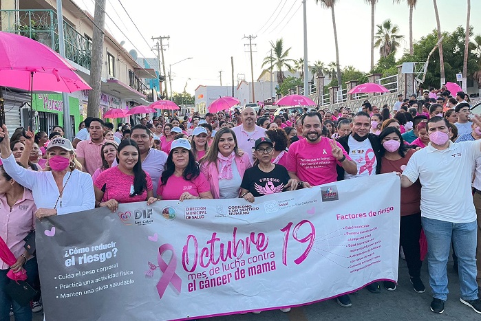 Para finalizar, se hace hincapié en que la Marcha forma parte de las actividades que el XIV Ayuntamiento de Los Cabos estará realizando para concientizar a la ciudadanía sobre la detección de esta enfermedad; en ese sentido, se invita a la población en general a participar en la marcha conmemorativa por la lucha contra el cáncer de mama en Cabo San Lucas, este 20 de octubre a partir de la 7:00 de la tarde en las instalaciones del Pabellón Cultural de la República; así como en la Carrera Rosa 3 Kilómetros que se celebrará el próximo 30 de octubre a partir de las 7:00 de la mañana en la ciclovía de Cabo San Lucas.