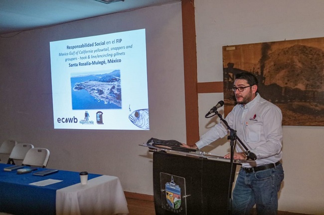 Asimismo, en el marco de esta sesión, tuvo lugar la exposición del proyecto de “Pesquerías Sustentables en Mulegé” a cargo de Víctor de Jesús Montero Zepeda, así como la presentación del taller de responsabilidad social en proyectos de mejora pesquera (FIP) a cargo de Julio Parra Alanís.