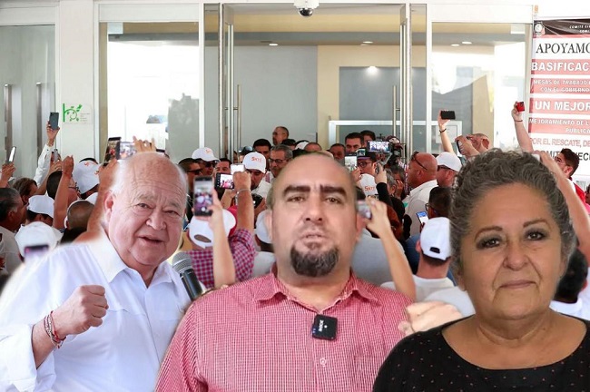DE HECHO, fue notable la presencia de más de un millar de trabajadores de la educación que llegaron a Palacio de Gobierno junto a ELMUTH CASTILLO SANDOVAL. Y ante los discursos de las distintas expresiones al interior del magisterio, hubo marcadas protestas dirigidas hacia ALICIA MEZA OSUNA, quien recibía reclamos y abucheos ante el manejo al frente de la Secretaría de Educación Pública en Baja California Sur.