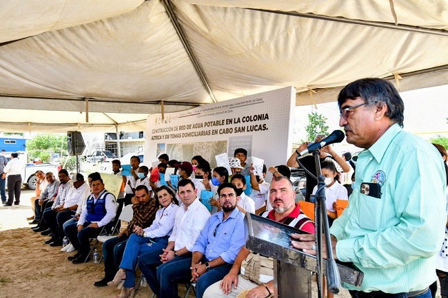 “El poder estar aquí en esta oportunidad de atender bajo la instrucción del presidente y el delegado, esa gestión de la gente de más de 16 años, quienes estuvieron solicitando el poder tener el servicio de agua potable al pie de sus lotes, de sus hogares; hoy se está haciendo justicia, estamos entregando esta obra que permitirá atender el llamado de la necesidad número uno que hay aquí en Cabo San Lucas, que es el suministro de agua potable”, pronunció el ingeniero Ismael Rodríguez Piña.