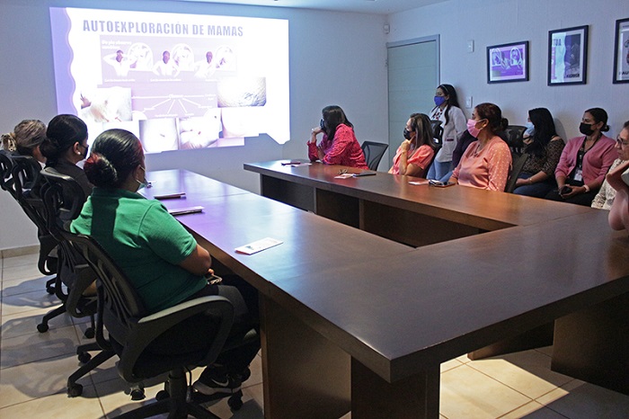 La Secretaría de Salud de Baja California Sur lleva a cabo jornadas informativas en instituciones públicas de los tres niveles de gobierno sobre los factores de riesgo y señales de alerta de cáncer de mama, con el objetivo de que las trabajadoras tomen conciencia sobre la importancia de acudir a los controles médicos de manera periódica que son fundamentales para identificar esta y otras enfermedades en etapas prematuras.