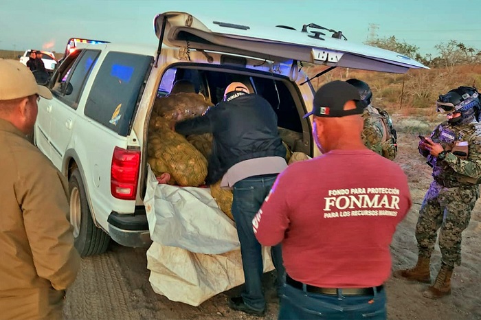 Durante operativo coordinado por parte de FONMAR, CONAPESCA y Seguridad Pública en el municipio de Comondú, fue descubierto un vehículo que llevaba a bordo aproximadamente una tonelada de almeja chocolata, la cual se encuentra actualmente en veda.