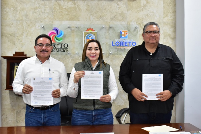 Asistieron a la firma de este convenio el Síndico Municipal, Rigoberto Gómez Gutiérrez; el Director Técnico, Humberto Carmona Davis; el Coordinador de Transparencia y Difusión del FONMAR, Omar de Jesús López; el Coordinador de FONMAR Loreto, Alfonso Evaristo Susarrey y los regidores Anaí Guadalupe Romero Arce, Delfina Rivas Romero y Jesús Guevara Sotelo.