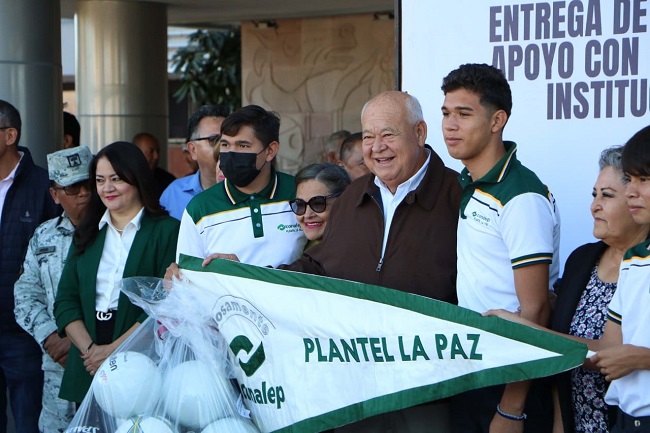 En este evento, que se llevó a cabo en la Plaza de la Reforma, frente a Palacio de Gobierno, el mandatario sudcaliforniano también hizo entrega de material deportivo a representantes de contingentes que participaron en el pasado desfile cívico del 20 de Noviembre.