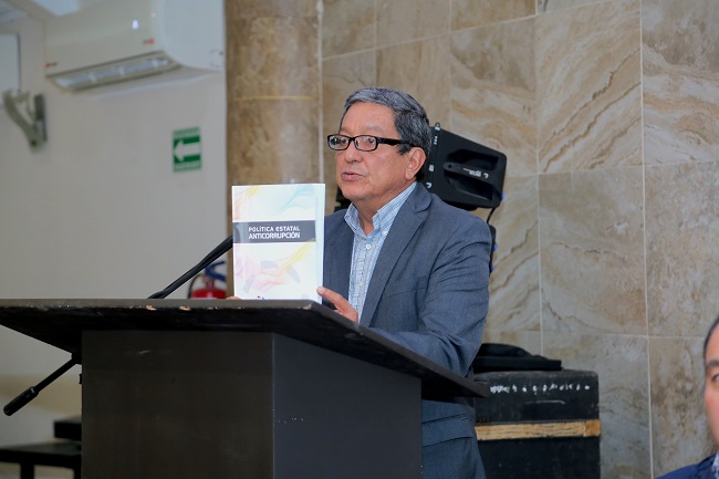 Acompañado de representantes y titulares de los organismos que conforman el Sistema Estatal Anticorrupción (SEA) y la Presidenta de la Comisión de Transparencia y Anticorrupción del Congreso de BCS, Gabriela Cisneros Ruiz, expuso que estos cuatro ejes consisten en combatir la corrupción y la impunidad, combatir la discrecionalidad y el abuso de poder, promover la mejora de la gestión pública e involucrar a la sociedad y al sector privado.