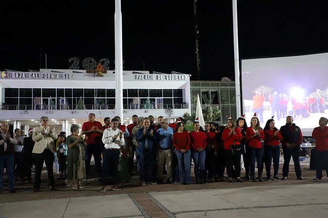Con el tradicional encendido de las luces navideñas, inicia la temporada decembrina en Baja California Sur, época que nos permite hacer un alto, no sólo como servidores públicos, sino como ciudadanos, expresó el secretario General de Gobierno, Homero Davis Castro, al encabezar este acto en la Plaza de Reforma de Palacio de Gobierno.
