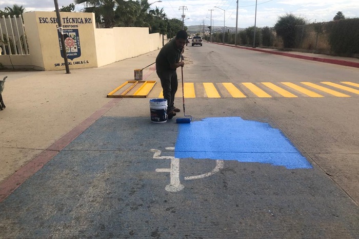 Con el objetivo de mantener en óptimas condiciones todas las señaléticas viales, mejorando la imagen del municipio y previniendo accidentes, la Dirección General de Seguridad Pública, Policía Preventiva y Tránsito Municipal, a través del personal de Operación y Mantenimiento, hace jornadas constantes de pintado en cruceros y pasos peatonales, así como colocación de señalamientos restrictivos e informativos.