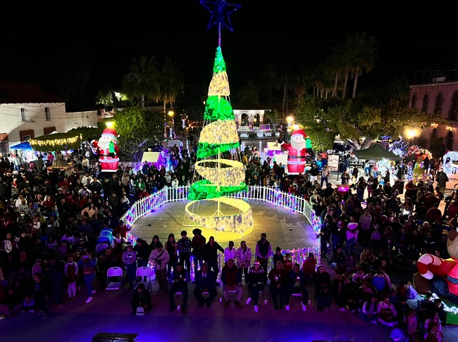 Loreto, B.C.S. La Plaza Benito Juárez, fue el punto de encuentro de cientos de familias loretanas con la alcaldesa Paola Cota Davis, que vivieron la magia y tradición decembrina, encendiendo el árbol de navidad.