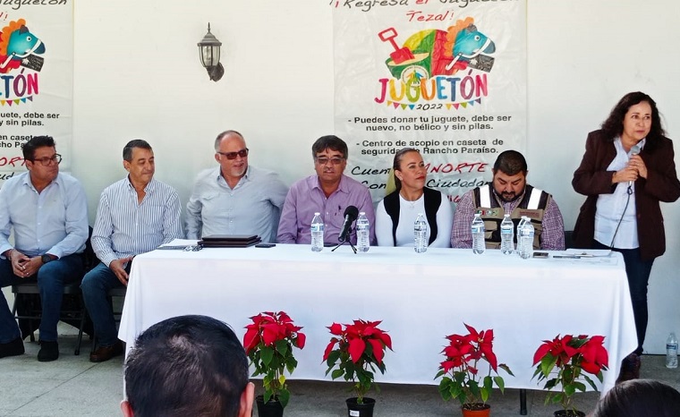 Por su parte la presidenta honoraria del DIF Flora Aguilar de Leggs, agradeció el apoyo de la ciudadanía de El Tezal e invitó para que se sumen con la donación de más Juguetes: “lo que buscamos es hacer feliz a los niños que menos tienen, por ello la intención es reunir lo más que se pueda; la entrega será el día 6 de enero, se estarán distribuyendo en todas las delegaciones de este municipio, por ello es que invitamos para que la población, empresarios y demás aporten un regalo que hará feliz a una niña o niño’’, indicó.