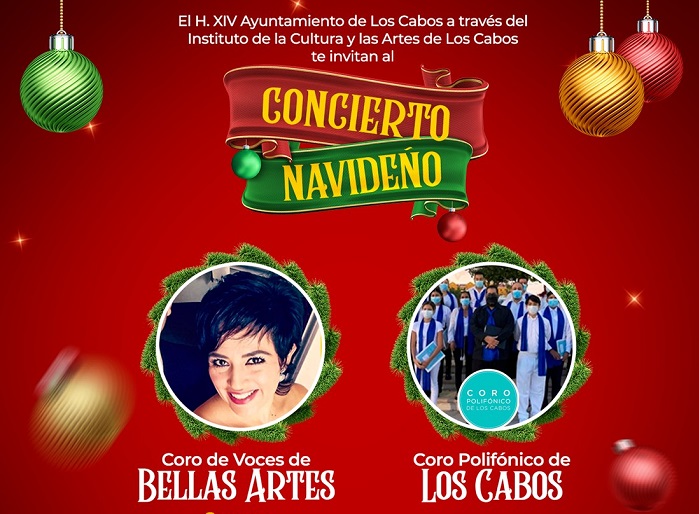 El XIV Ayuntamiento de Los Cabos que preside Oscar Leggs Castro, a través del Instituto de la Cultura y las Artes de Los Cabos (ICA), a cargo de Irene Román Salgado, invita a la ciudadanía al “Concierto Navideño”, donde se contará con la participación de la soprano Lucía Salas del “Coro de Voces de Bellas Artes” y al Coro Polifónico de Los Cabos, los cuales deleitarán a la ciudadanía con su voz y talento.
