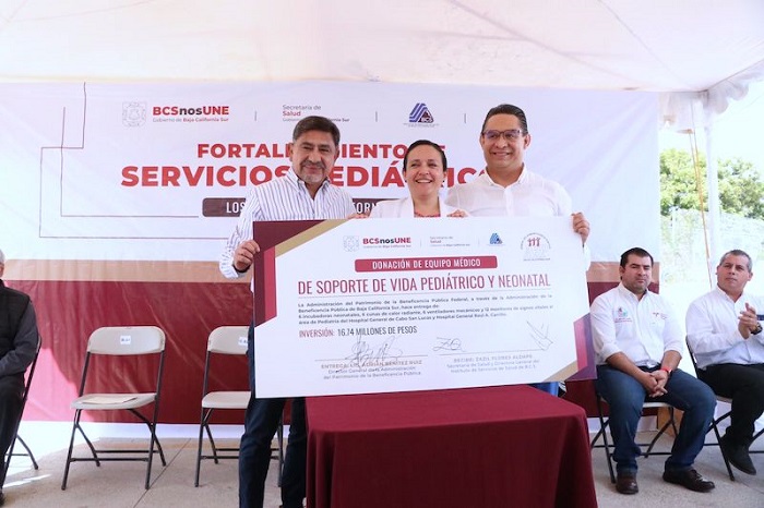 Mediante el uso eficiente de recursos, los gobiernos de México y de Baja California Sur trabajan para que las niñas y niños que viven en condiciones de mayor vulnerabilidad tengan acceso garantizado a servicios médicos de calidad, expresó el secretario general de Gobierno, Homero Davis Castro durante la entrega de equipo para soporte de vida pediátrico y neonatal que la Administración del Patrimonio la Beneficencia Pública (APBP) realizó este jueves a los hospitales generales de Cabo San Lucas y de San José del Cabo.