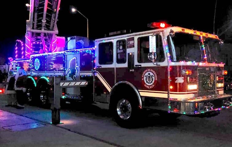 Elementos del H. Cuerpo de Bomberos de La Paz realizó el segundo desfile navideño durante la noche de este martes, mostrando sus vehículos de emergencia decorados, para deleite de la ciudadanía, además se contó con Santa Claus, quien repartió dulces a los niños.