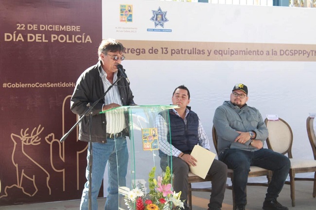Cumpliendo con el compromiso de mejorar la seguridad, el orden y la paz pública, así como fortalecer los recorridos de vigilancia en el municipio, el alcalde de Los Cabos Oscar Leggs Castro hizo entrega de 20 patrullas nuevas unidades radio patrulla, equipo de protección y uniformes a la Dirección General de Seguridad Pública, Policía Preventiva y Tránsito Municipal.