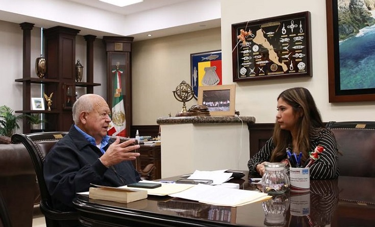El Gobierno del Estado y el Instituto Sudcaliforniano de las Mujeres (ISMujeres), continuarán con la implementación e impulso de campañas y estrategias contra la violencia hacia la mujer, así lo acordaron el gobernador Víctor Castro Cosío y la directora Irene Berenice Serrato Flores, en encuentro de este día en Palacio de Gobierno.