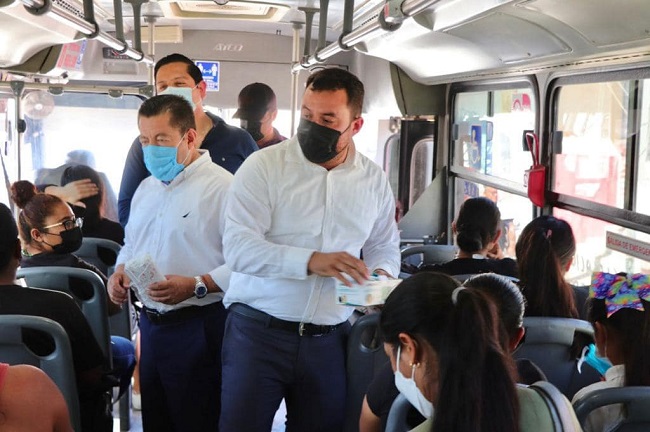 Durante el desarrollo de estas tareas se realizan verificaciones aleatorias en el transporte público y se exhorta a los usuarios a utilizar correctamente el cubrebocas, además de que de manera gratuita son entregados estos artículos a las personas que hacen uso del servicio. Asimismo, el trabajo también se ha implementado en las afueras de los planteles escolares.
