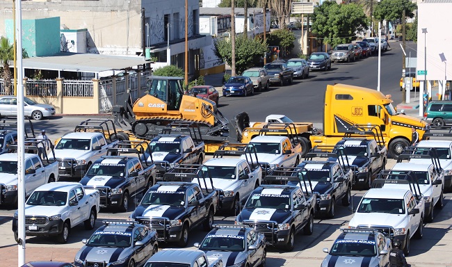 En acto desarrollado en la Plaza de la Reforma, frente a Palacio de Gobierno, el Ejecutivo estatal hizo entrega de 15 vehículos equipados a la Secretaría de Seguridad Pública, 13 a la Procuraduría General de Justicia, 9 a la Secretaría General de Gobierno y 3 al Instituto Sudcaliforniano de la Mujer.