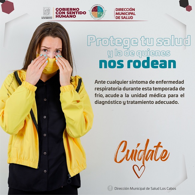 Debido a las bajas temperaturas que se sienten en el municipio, el XIV Ayuntamiento de Los Cabos que preside Oscar Leggs Castro, a través de la Dirección Municipal de Salud, a cargo del Dr. Juan Carlos Costich Pérez, invita a la ciudadanía a extremar precauciones para evitar enfermedades de vías respiratorias.