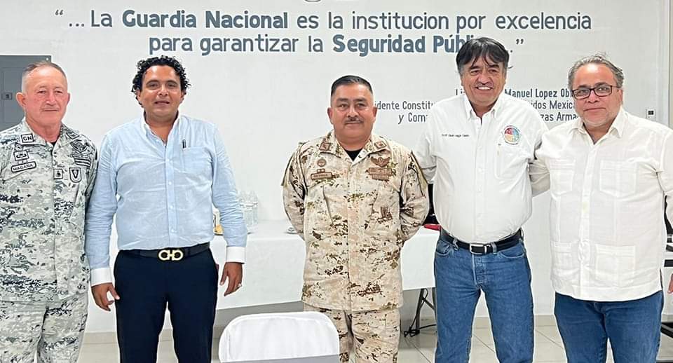 Tomando en cuenta que el alcalde Oscar Leggs Castro tiene una definida visión para poner a Los Cabos en el primer lugar en materia de Seguridad Ciudadana, se concreta reunión de trabajo con el General Brigadier Sinecio Magaña Ortiz Coordinador de la Guardia Nacional en Baja California Sur, General Brigadier . Gerardo Zerna Melchor Comandante de la 35/ZM , el Alcalde Oscar Leggs Castro, Maestro. Rafael Vazquez y el Lic. Sergio Daniel Izquierdo y Viamonte