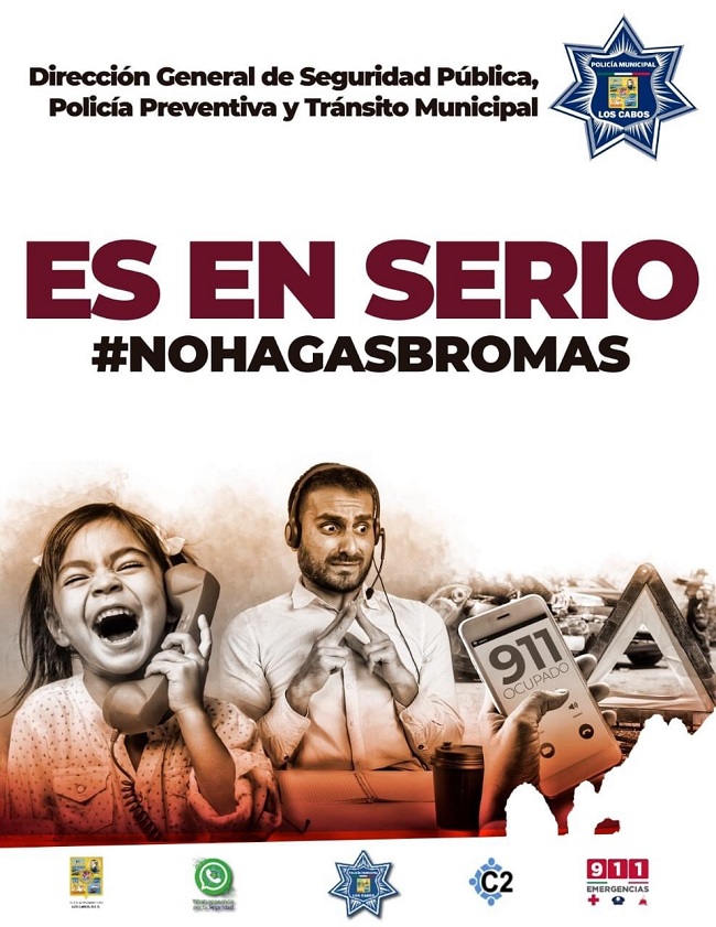 Seguridad Pública de Los Cabos a través del (C2) pone a disposición para la ciudadanía que requiera apoyo de las unidades de emergencia el número 9-1-1, donde podrán tener de manera gratuita el auxilio de unidades de la Policía Preventiva, Tránsito Municipal, Protección Civil, Bomberos y ambulancias de la Cruz Roja, así como asistencia en caso de extorsiones telefónicas.