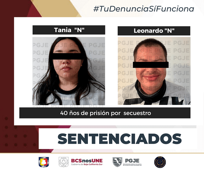 En audiencia de Juicio Oral para individualización de sanciones y reparación del daño, que se realizó el jueves 12 del mes en curso, la Procuraduría General de Justicia del Estado (PGJE), obtuvo del Trinunal de Enjuiciamiento, 2 sentencias condenatorias de 40 años de prisión, la pérdida de derechos políticos y la reparación del daño en contra de Leonardo Mohamed “N” y Tania Isabel “N”, quienes fueron encontrados penalmente responsables del delito de secuestro en agravio de un hombre.