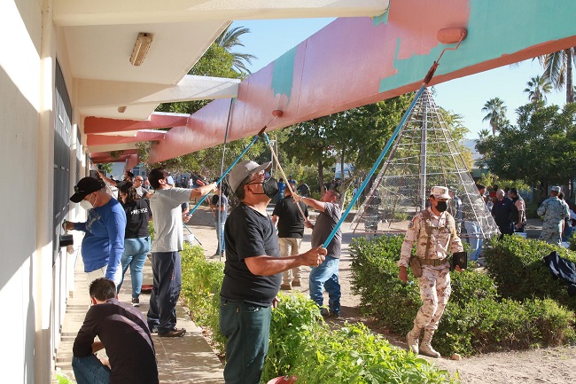 En respuesta a la convocatoria del Ejecutivo estatal Víctor Castro Cosío, integrantes de las diversas dependencias de Gobierno del Estado, Ayuntamiento de La Paz y Fuerzas Armadas, acudieron a realizar trabajos de rehabilitación y mantenimiento en la Benemérita Escuela Normal Urbana “Profesor Domingo Carballo Félix”.