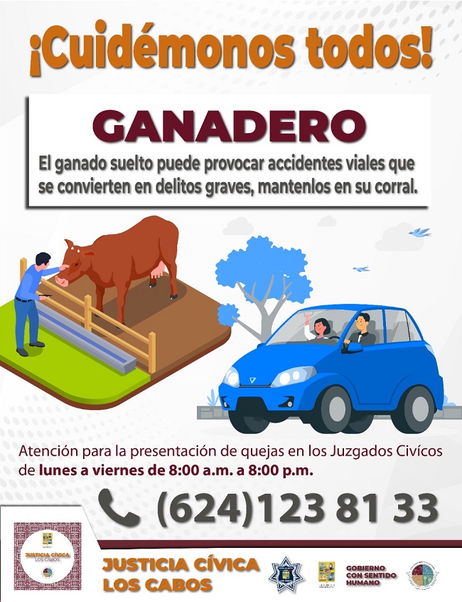 Lo anterior lo dio a conocer el presidente de Justicia Cívica de Los Cabos, Juan Luis Araiza Diaz, quien detallo que durante la visita también se les dará a conocer a ganaderos la norma que se infringe según el artículo 64 fracción 13 del Bando de Policía y Buen Gobierno en el cual se señala que podría ameritar una sanción de 20 a 200 UMAS ($2,074 a $20,748 pesos mexicanos).