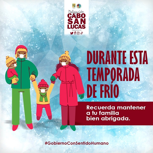 Ante las condiciones meteorológicas de la presente temporada invernal, el Gobierno de Los Cabos a través de la Coordinación de Salud, hace un exhorto a la comunidad en general a tomar precauciones para evitar enfermedades bronco respiratorias, con cuidado especial a menores de edad, pacientes con padecimientos crónicos, mujeres embarazadas y personas adultas mayores, quienes son más propensas a contraer infecciones o virus como la gripe o influenza, así lo informó la coordinadora de Salud en Cabo San Lucas Karina Larumbe Pineda.