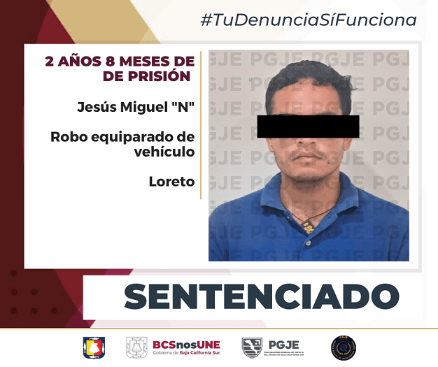 El ahora sentenciado fue sorprendido el 29 de junio del 2022 en el kilómetro 24 del tramo carretero Loreto – Santa Rosalía, conduciendo un vehículo marca Honda, modelo 2021 color blanco, que contaba con reporte de robo.