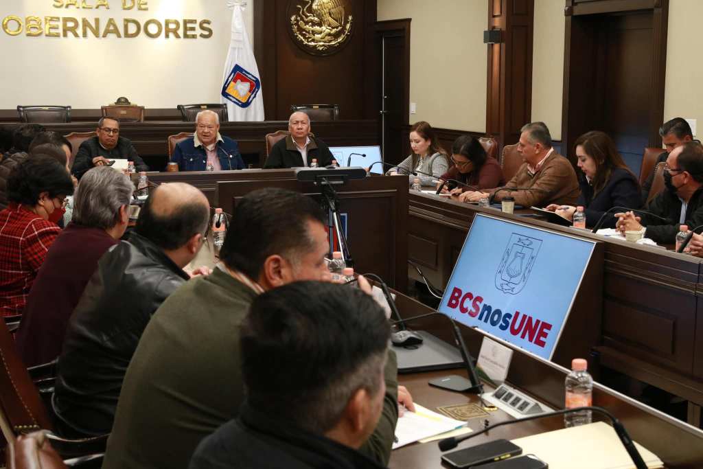 El gobernador de Baja California Sur, Víctor Castro Cosío, sostuvo reunión de trabajo con alcaldesas, tesoreros y representantes municipales, junto al Presidente Magistrado del Tribunal Superior de Justicia Daniel Gallo Rodríguez, el Diputado Luis Armando Díaz y sus administradores, a bien de continuar aplicando políticas públicas sanas que beneficien a la sociedad sudcaliforniana.
