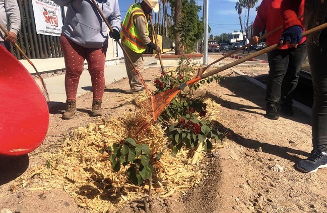 El personal del área de parques y jardines de la Dirección General de Servicios Públicos Municipales, realizaron cazuelas y aplicación de 600 kilogramos de mulch en los trabajos de reforestación de la Benemérita Escuela Normal Urbana «Profr. Domingo Carballo Félix», dio a conocer el jefe del área, Raúl Antonio Ramos Lucero.