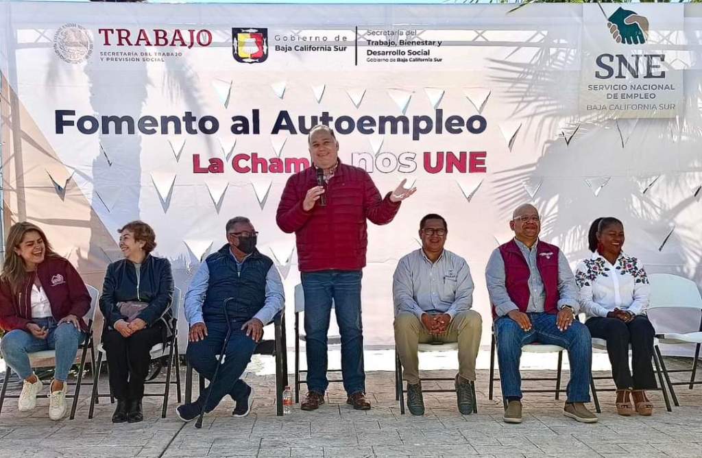 Lo acompañaron autoridades del Gobierno Federal, Lic Mercedes Maciel Secretaria del Trabajo y Previsión Social Federal en BCS, José Manuel Flores en representación de la delgada estatal de programa sociales de la secretaria de Bienestar en BCS, E nuestro compañeo Vladimir Torres director del Servicio Nacional del Empleo, nuestra compañera Lic Fernanda Villarreal del INVI, Rafael Aviles en representación de la alcaldesa Milena Quiroga y la regidora Juana Mejia.