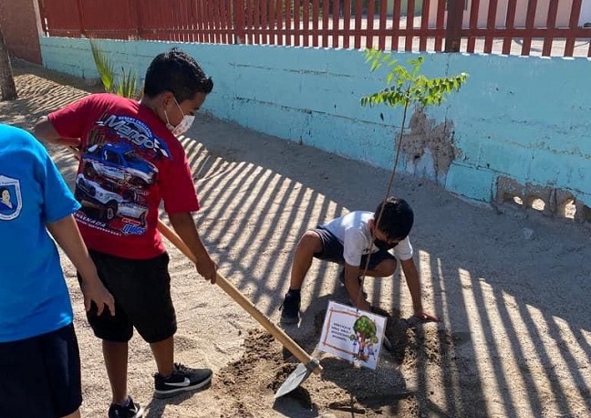En este sentido, dijo, a la fecha se han realizado estas jornadas de reforestación en tres escuelas primarias, contando con la aportación de 400 alumnas y alumnos, así como personal directivo y docente.