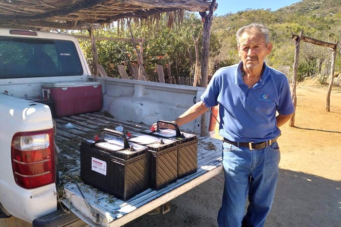 Con el propósito de incentivar la productividad de los núcleos campesinos, el Gobierno de Los Cabos a través de la Dirección Municipal de Desarrollo Rural, implementa la entrega de diversos apoyos que mejoren la calidad de vida de quienes habitan en las rancherías de Cabo San Lucas, prueba de ello, es la dotación de 36 acumuladores de energía que se han distribuido en las comunidades de Los Pozos, La Candelaria, Migriño y San Vicente de la Sierra, así lo informó el titular de dicha dependencia Leonel Efraín Cota Cárdenas.