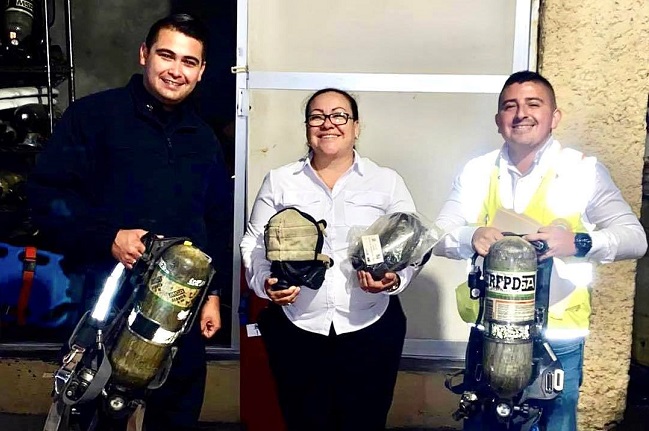 Finalmente, comunicó que a través del trabajo interinstitucional que realiza el Gobierno de Los Cabos, se logró la donación de 2 equipos de Respiración Autónoma, por parte del comandante del H. Cuerpo de Bomberos de San José del Cabo Omar Barrera Núñez; equipo que se utiliza para el combate contra incendios y que consta de 4 componentes principales: cilindro de alta presión, regulador, máscara y arnés.