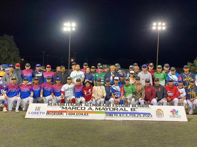 Loreto, BCS. – Con una inversión de 694.5 mil pesos, de recursos provenientes de la renta del inmueble conocido como «El Caimancito», se rehabilitó el alumbrado del estadio de béisbol «Marco Antonio Mayoral Baeza» en Loreto, acción emprendida por el gobernador Víctor Castro Cosío, apoyando decididamente al deporte y la cultura en los municipios.